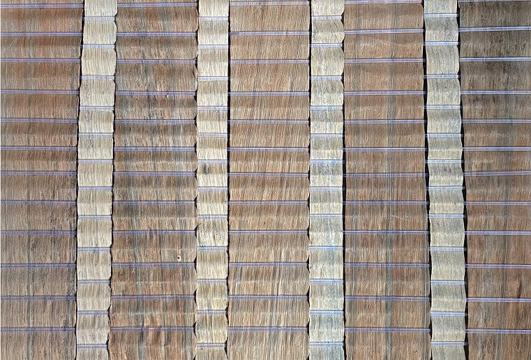 Le projet Anamã propose à ses usagers un retour à la nature. Au cours de leur séjour, ils évoluent en harmonie avec l’environnement, qui inspire et guide l’architecture du projet. Pour concrétiser cette démarche, nous avons analysé les qualités et les propriétés des matériaux présents aux alentours, puis conçu les revêtements du site à partir de ressources locales. Cette démarche a soulevé différents questionnements: il a fallu identifier les déchets disponibles sur place, recenser les ressources locales et définir les besoins et attentes des usagers. Nous avons concentré nos recherches sur la création de tissages souples en fibres végétales (cocotier, palmier royal, etc.) en vue de les utiliser pour du mobilier et des revêtements architecturaux (murs et plafonds). L’expertise des artisan∙nes et plasticien∙nes de Pipa a été précieuse pour mener à bien ce travail.